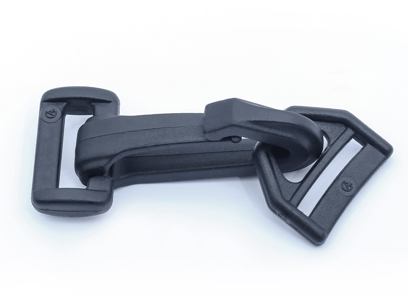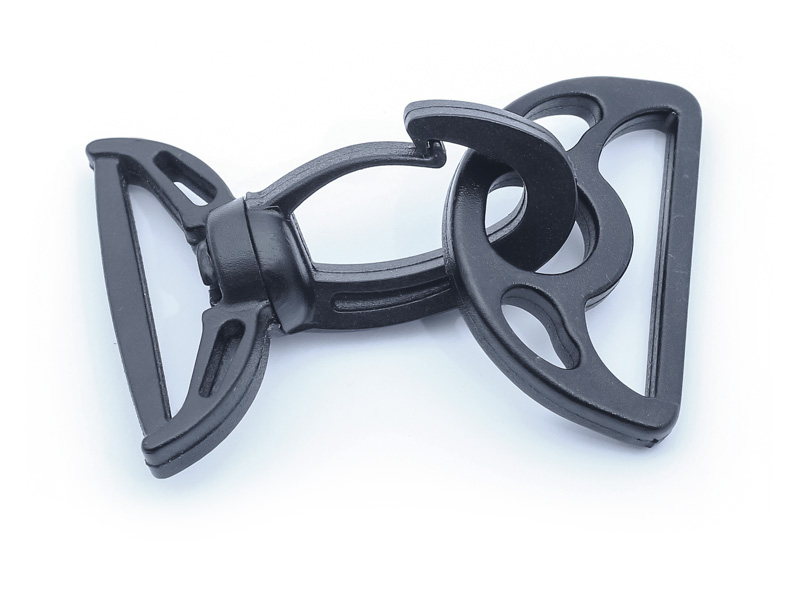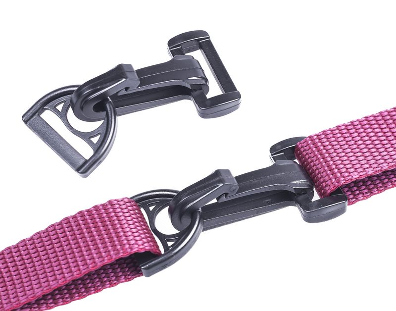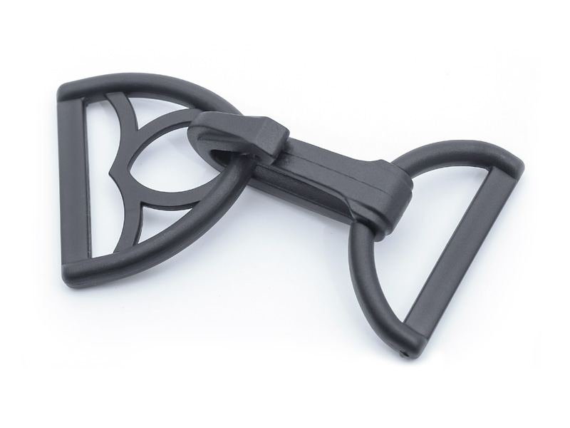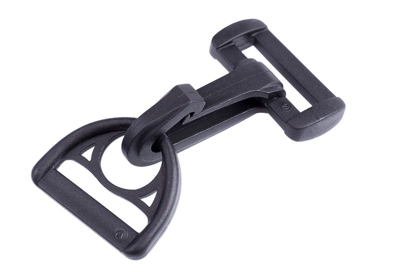 Komplet karabińczyków składa się z dwóch części – haka i zaczepu. Sam w sobie nie służy do regulacji, ma za zadanie złączyć torbę z taśmą nośną. Konstrukcja umożliwia wpięcie zaczepu do wnętrza haka. To rozwiązanie zapewnia jednocześnie stabilność (części nie rozłączą się bez interakcji użytkownika) oraz mobilność (odpowiednio wpięty zaczep znajduje się w specjalnej wypustce, zapewniającej jego ruchliwość).